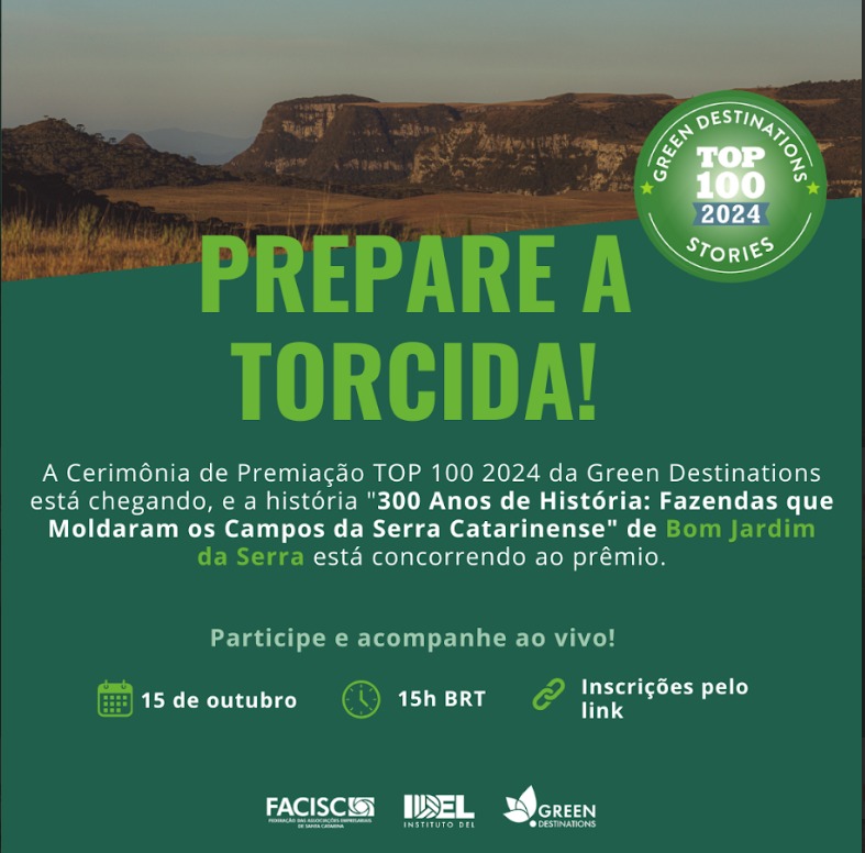 Para divulgar os vencedores, a Green Destinations, uma fundação global dedicada ao desenvolvimento sustentável no turismo, organizará a cerimônia de premiação do TOP 100 Stories 2024, celebrando destinos de todo o mundo que superaram desafios ambientais, sociais e econômicos enquanto promovem práticas de turismo sustentável.