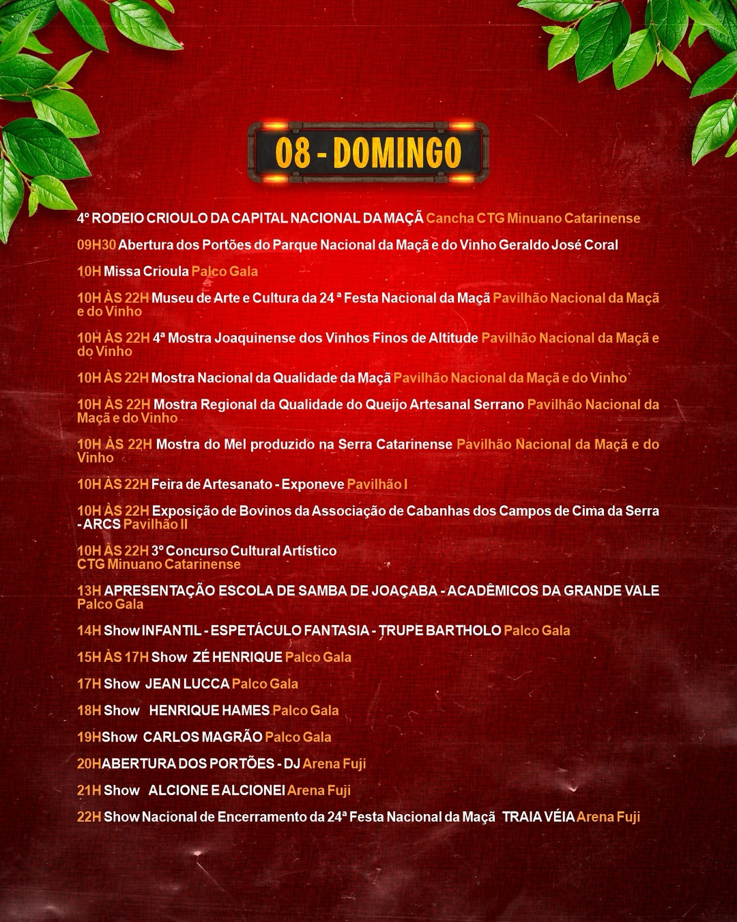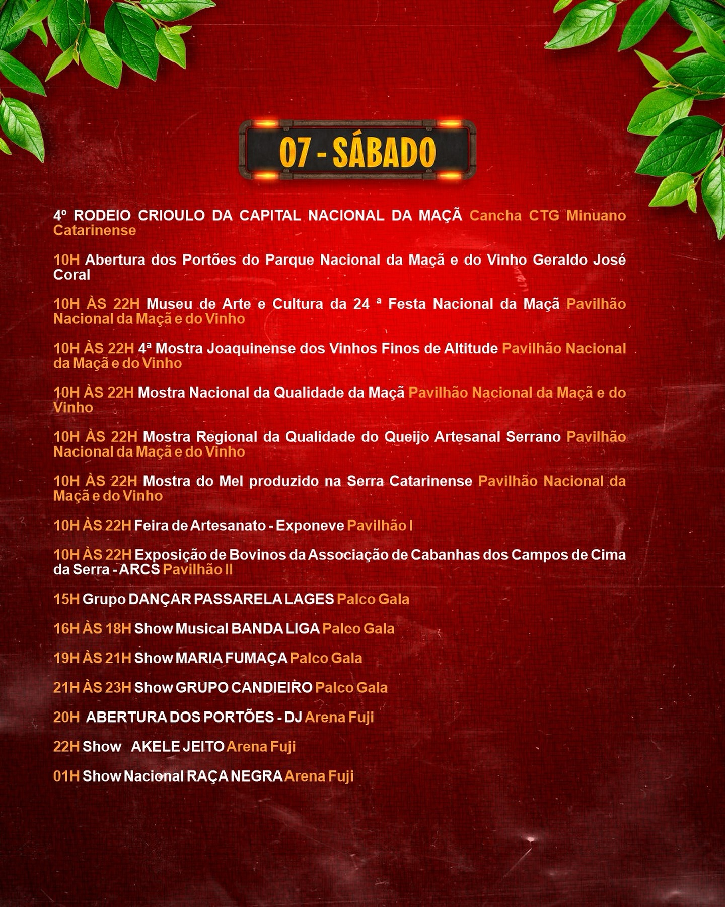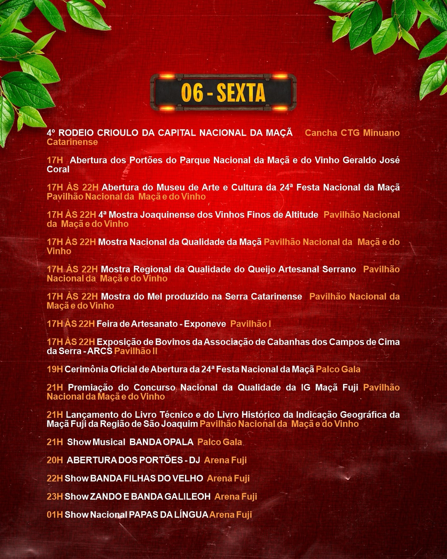 19h Cerimônia oficial de abertura da 24ª Festa Nacional da Maçã no Palco Gala